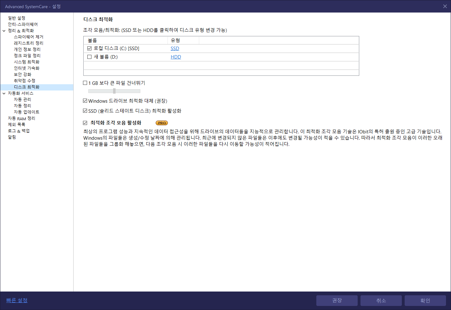 프리버전에서는 총 9가지 항목을 최적화할 수 있었다.