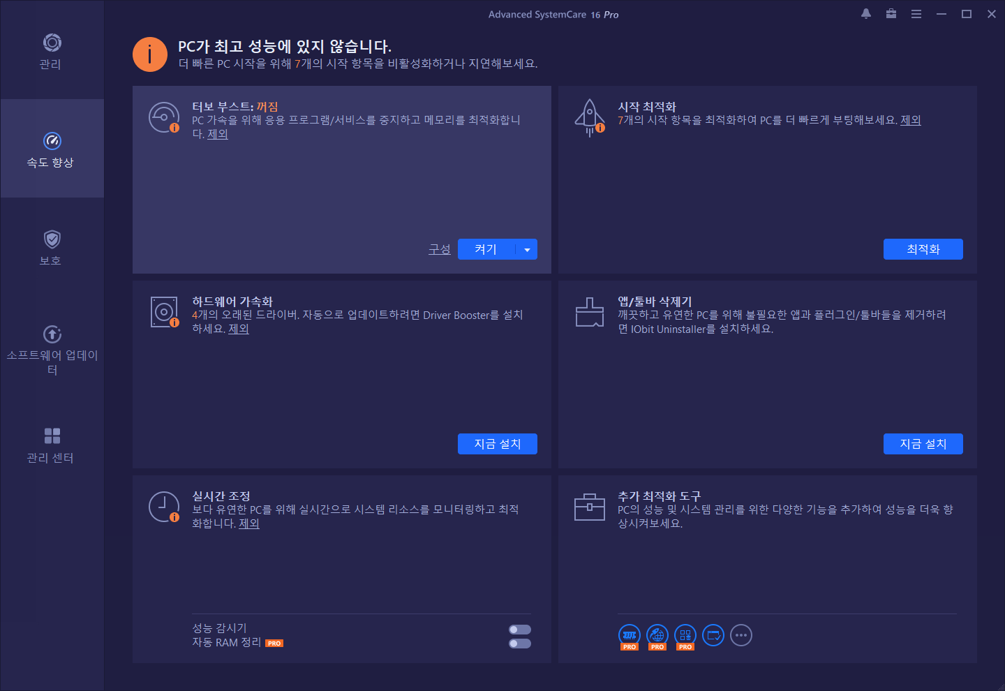 AdvancedSystemCare(이하 ASC)는 윈도우7 시절에 잠깐 사용해 봤으며 문득 생각나서 찾아보니 버전은 16까지 나와있었다. 그 당시에는 윈도우 설정을 너무 조지는 듯한 느낌이 들어 '이래도 되나..' 싶을 정도였는데 지금은 얼마나 개선되었을지 보도록 하겠다.