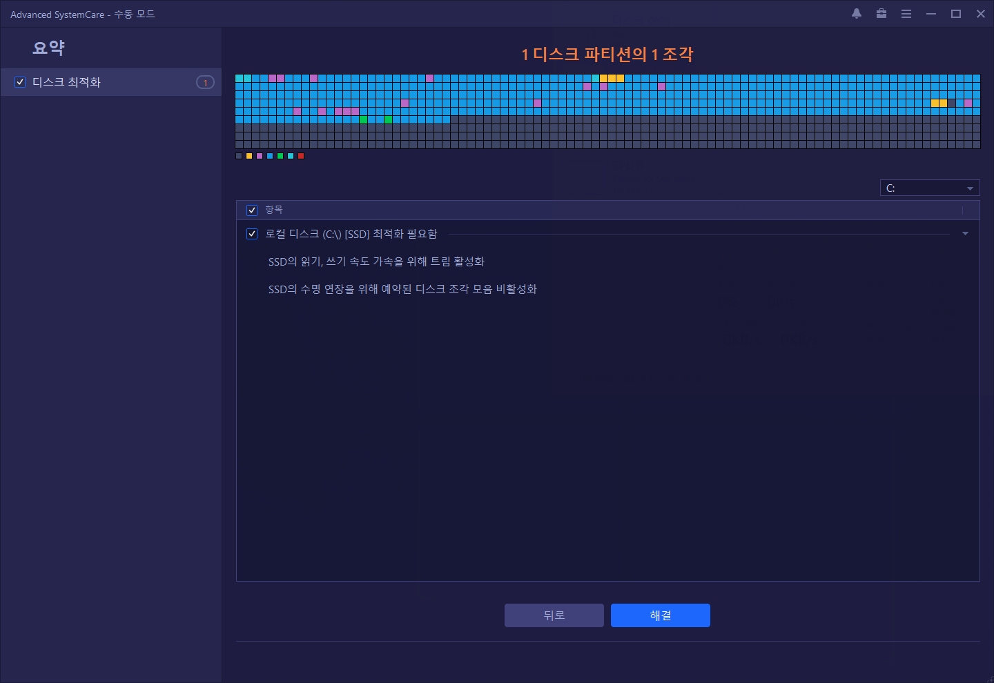 8.디스크 최적화는 기본적으로 HDD 쪽 기능으로 보인다. 물론 SSD도 지원하긴 하는데 조각모음에 특화된 기능이 아닌가 싶다.