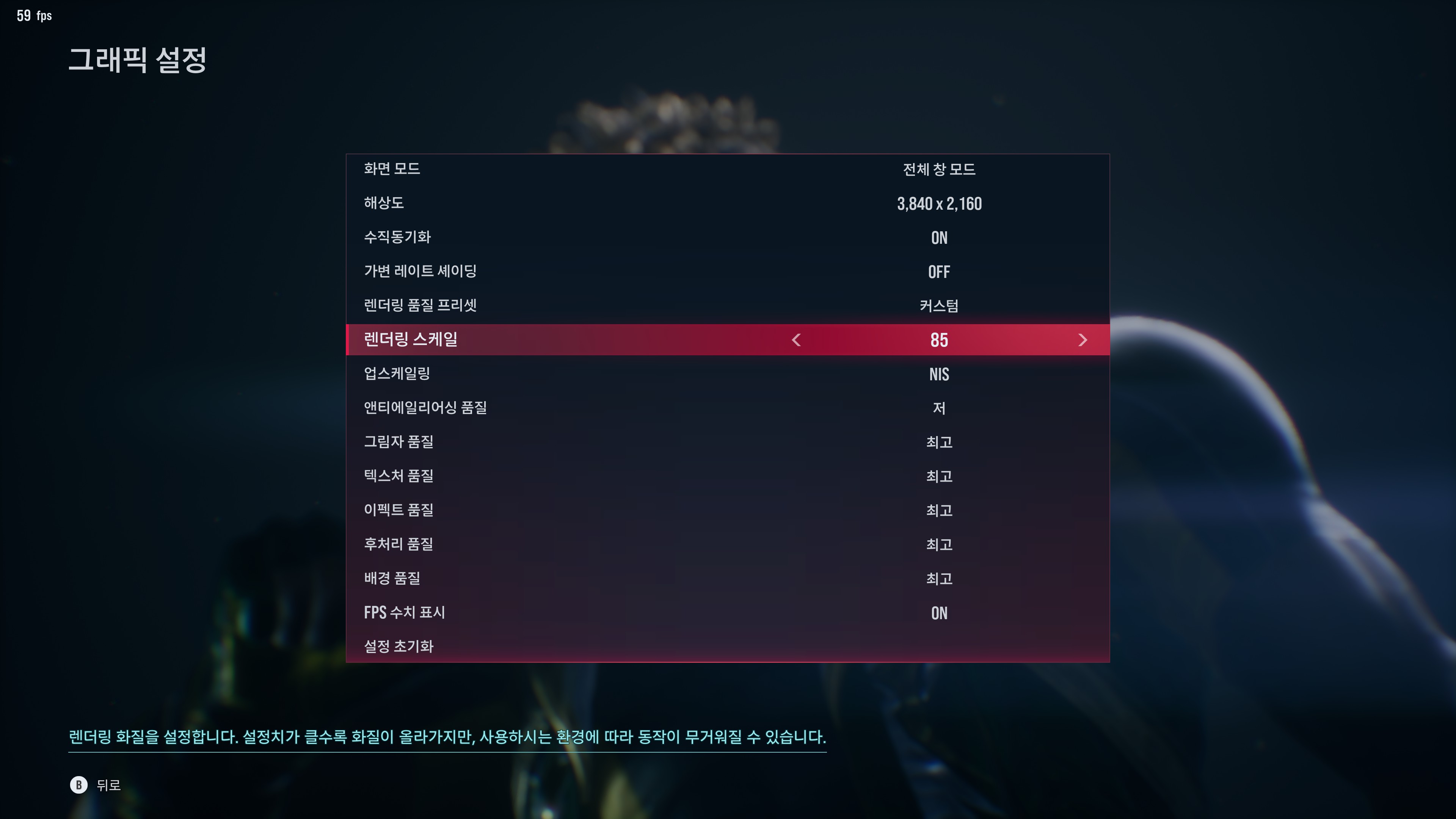 4. 품질 좀 올리고 싶으면 TAAU, NIS에 렌더링 80~85 정도는 갠춘할 듯