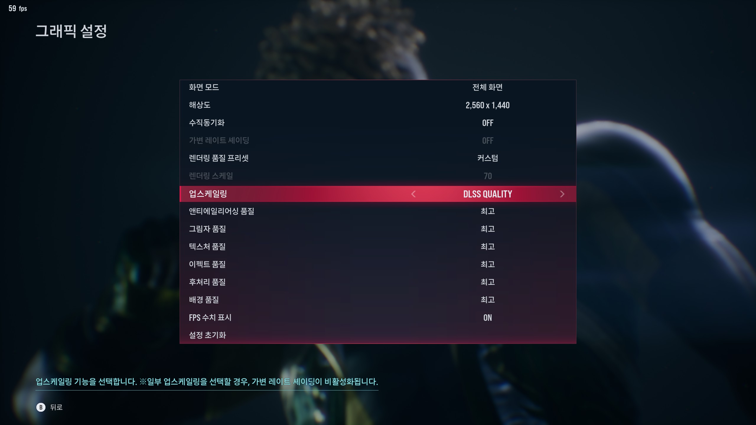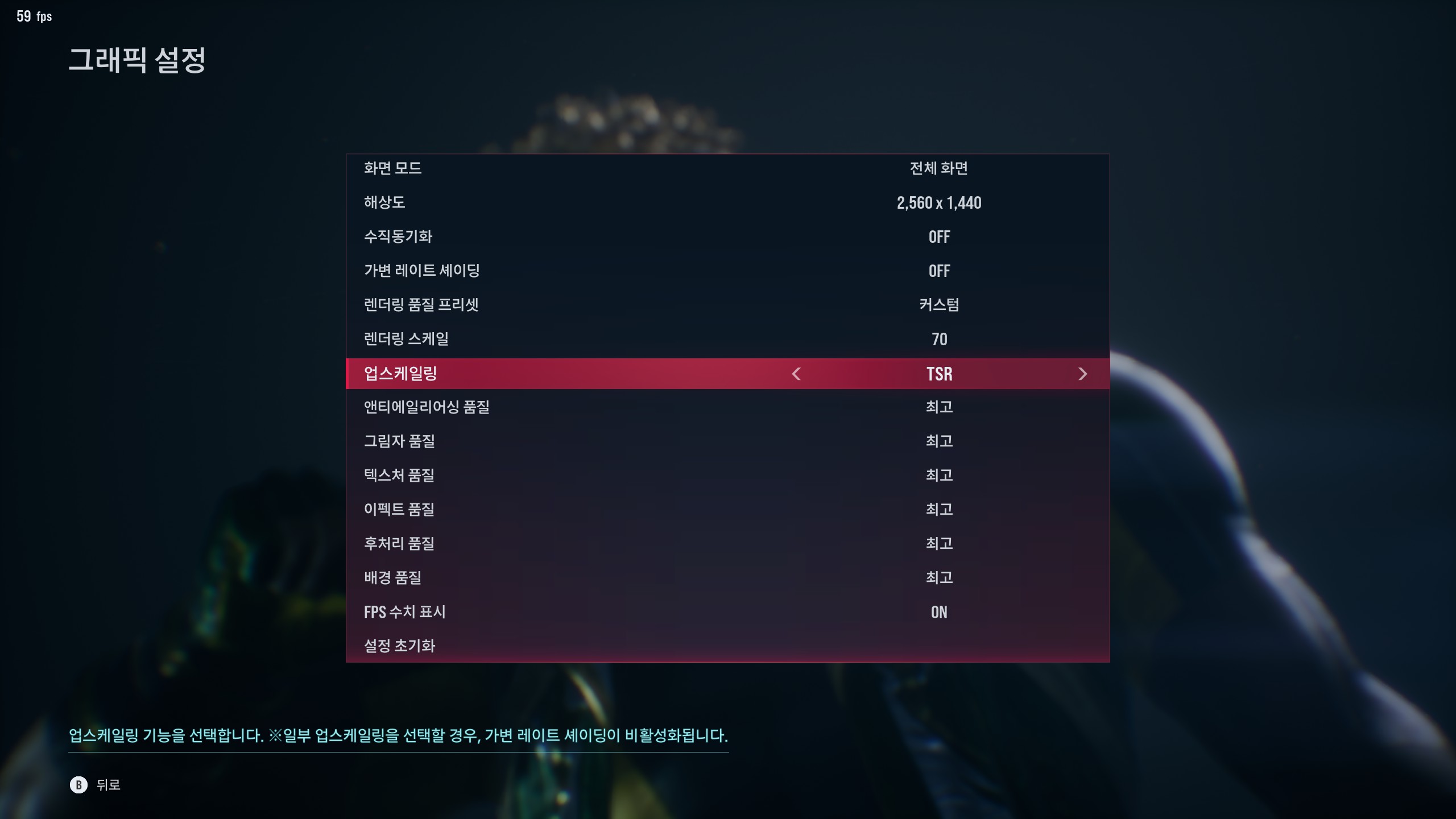 2. QHD에서는 NIS80~85, TSR65~70, DLSS Quality 최고옵 됨.