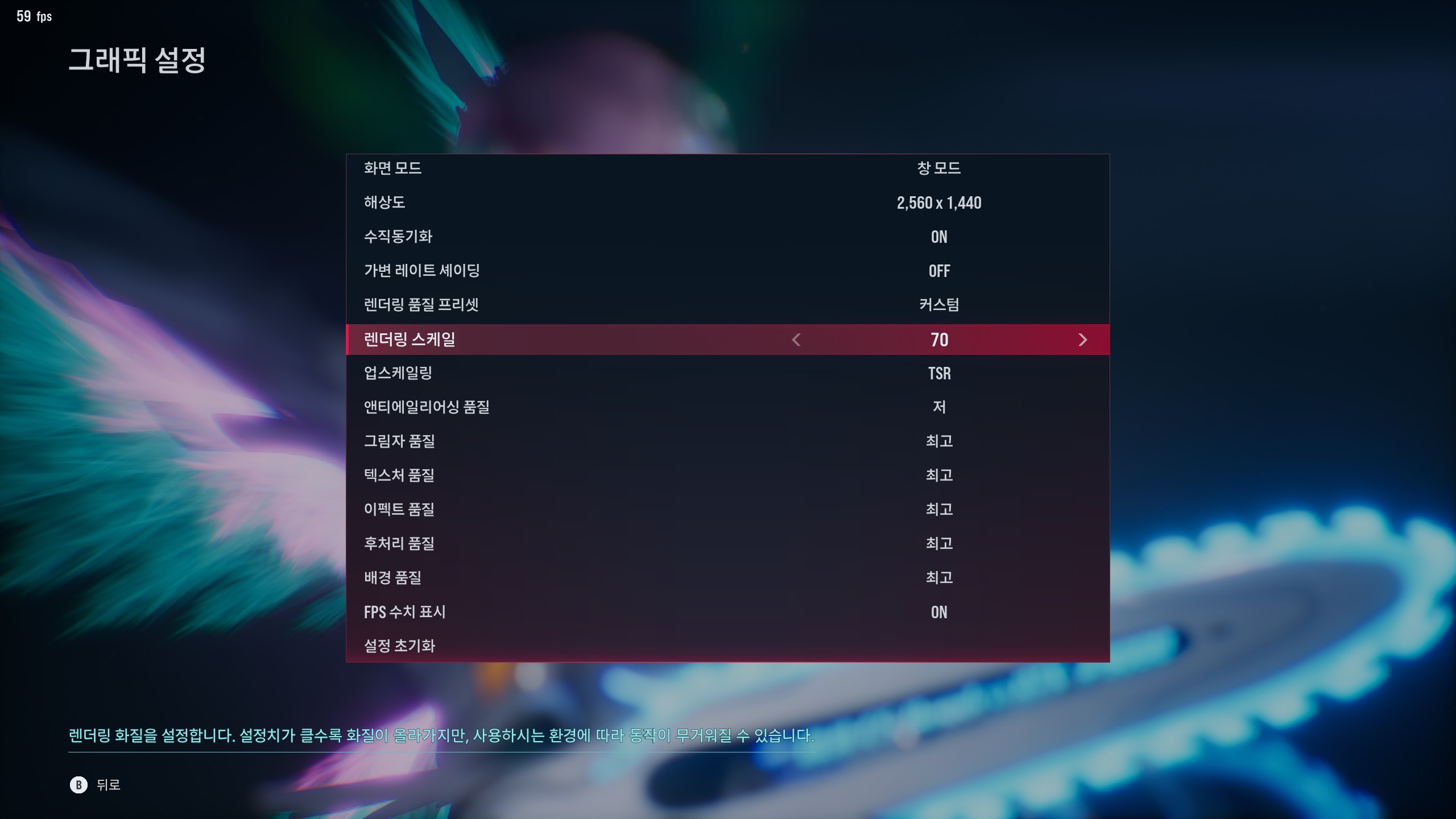 QHD 2560x1440에서는 TSR70에 최고옵(안티 끔), TAAU80에 최고옵, XeSS1.3 Quality에 최고옵이 가능했다.