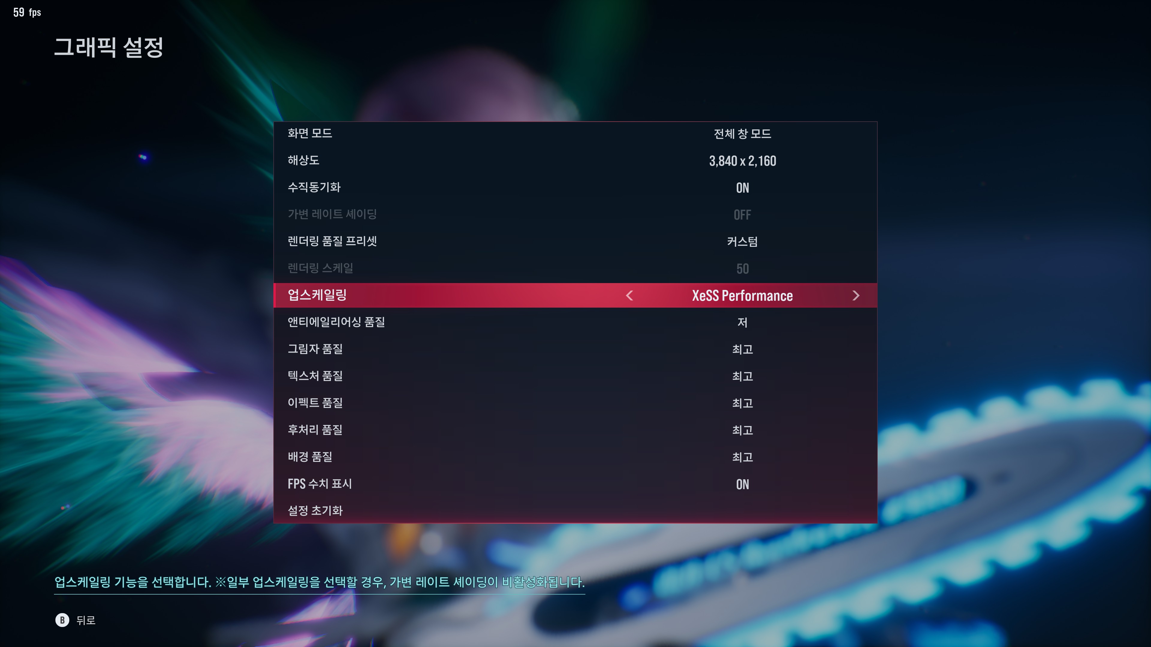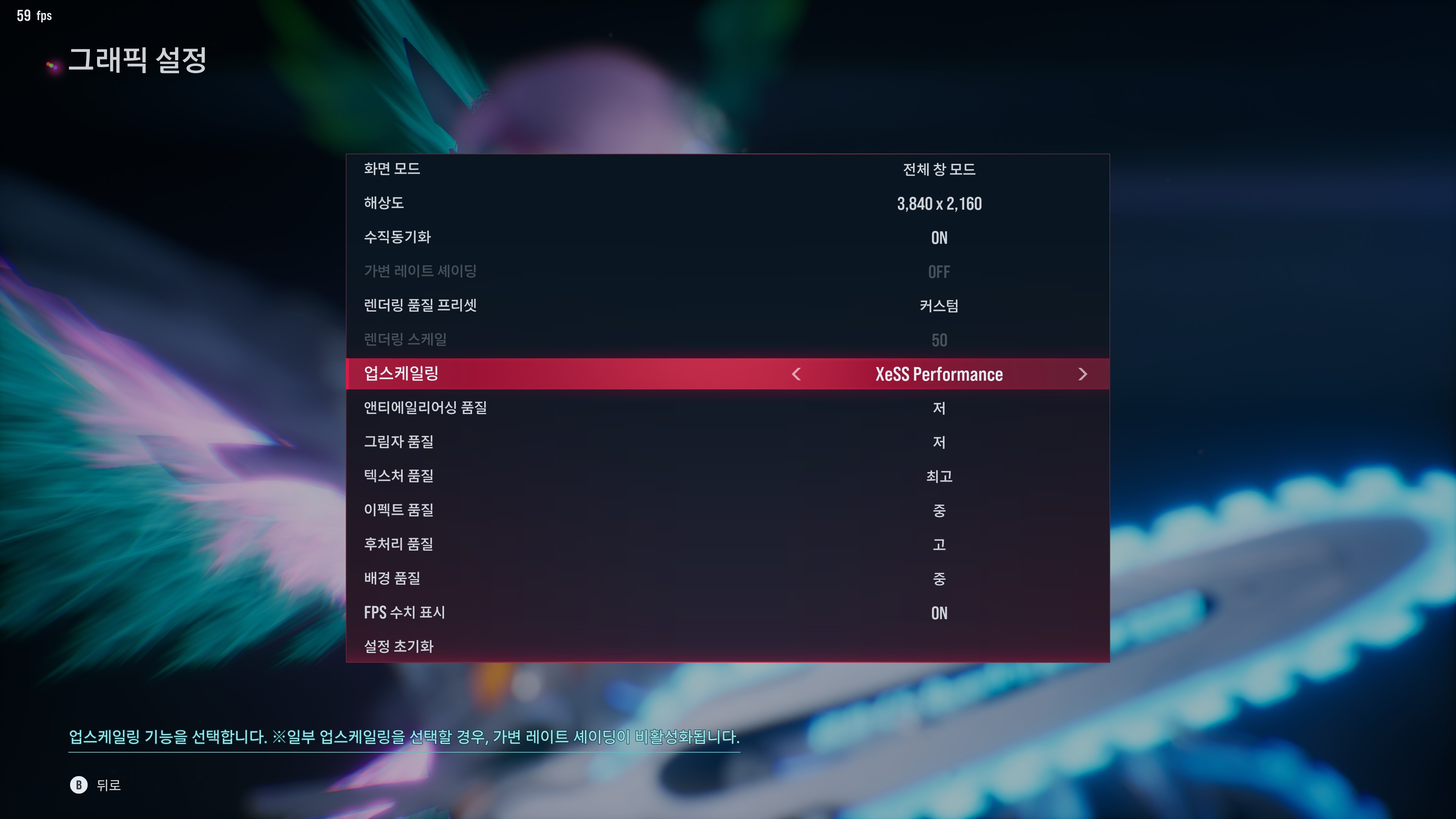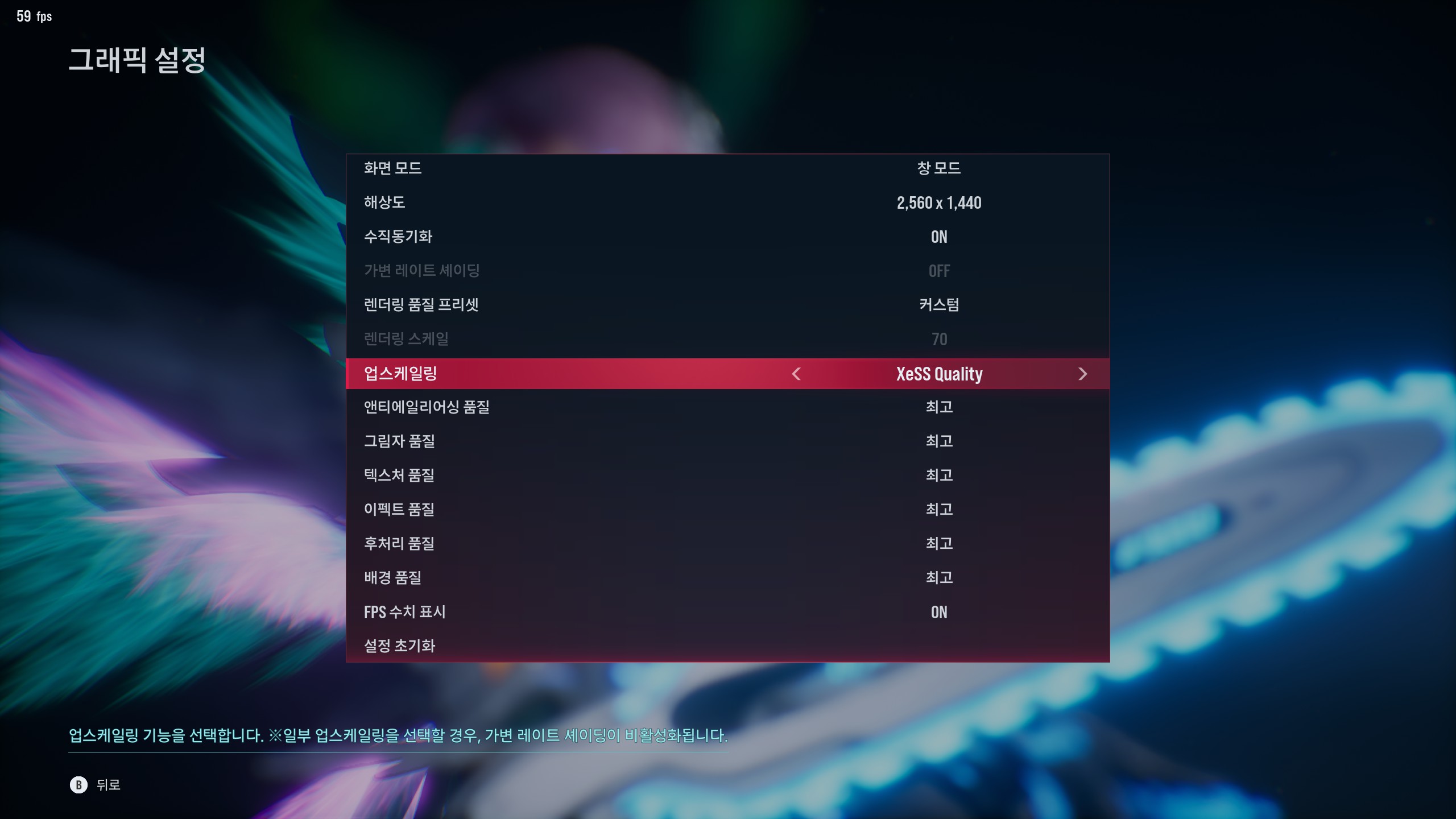 더 원활하게 돌리고 싶으면 XeSS Ultra Quality를 쓰는 것도 좋다.