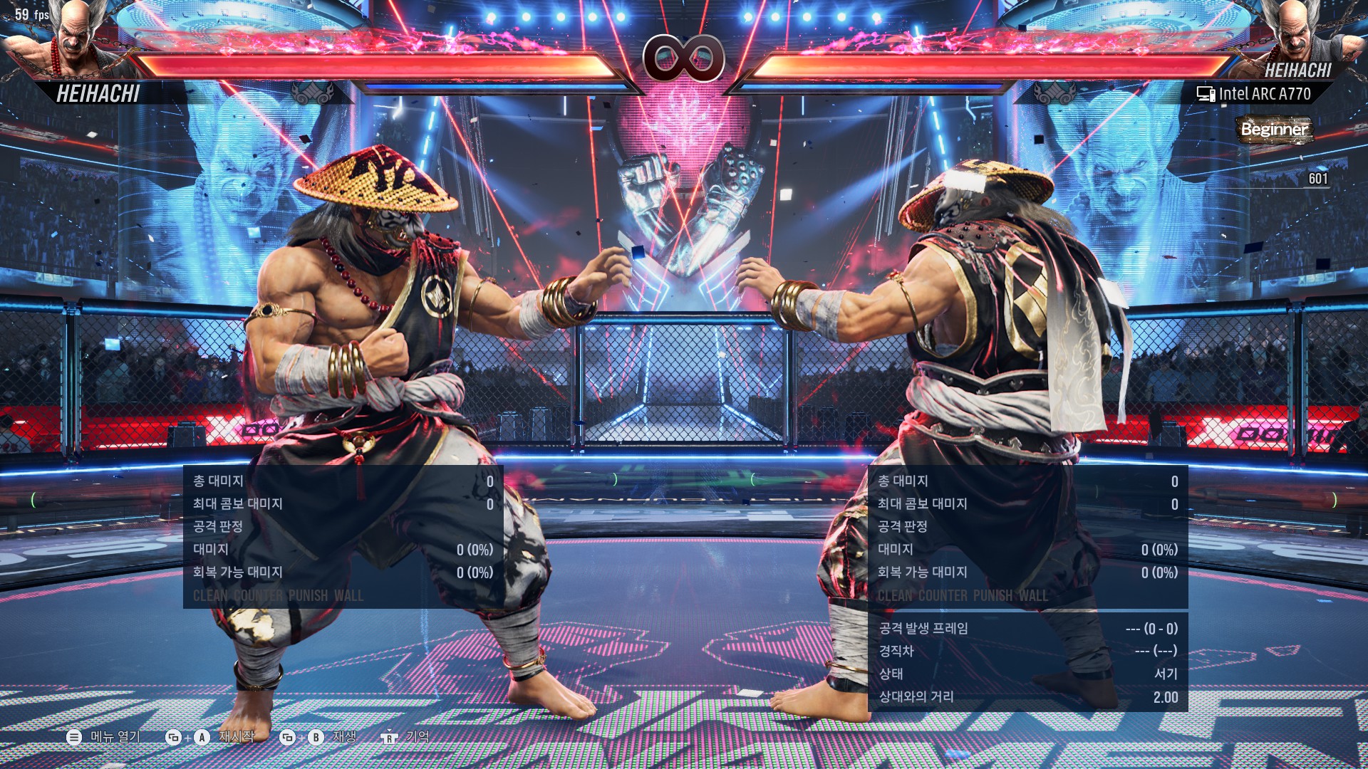 인텔의 야심작 아크. DX9 게임은 D3D9On12로 맵핑해서 구동한다고 하고 DX11 게임은 열심히 최적화하고 있지만 아직 스펙만큼 성능을 끌어내지 못하고 있다고 한다. 하지만 철권 8은 DX12에 언리얼 5 엔진으로 만든 게임이다. 아크 시리즈는 DX12 Ultimate를 완벽 지원하며 최신 유명게임을 우선으로 최적화를 해주기 때문에 철권 8에서 많은 기대가 되는 부분이다. 그도 그럴 것이 3DMARK의 DX12 테스트인 Steel Nomad에서 4060ti 16G와 3070 사이의 점수가 나왔었다.