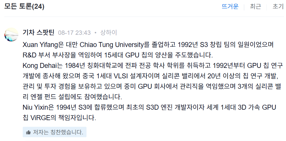 해당글에 달려있는 댓글이다. 물론 진짜로 92년, 94년부터 일했는지 팩트체크는 필요하겠지만 S3 창립멤버급 출신임은 확실하다.